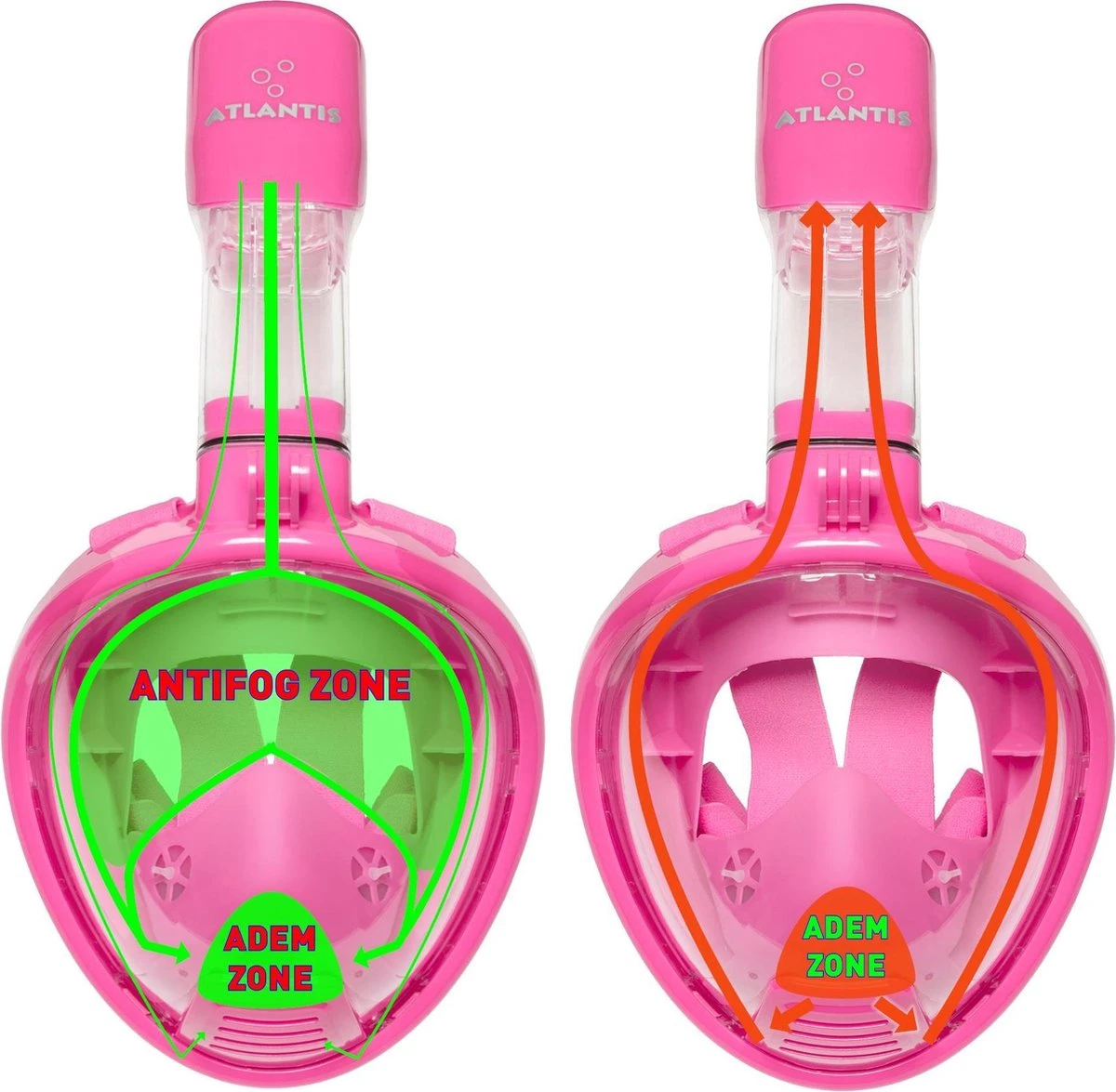 Het Atlantis 2.0 snorkelmasker is geschikt voor snorkelen aan de wateroppervlakte. Door het unieke ontwerp van dit full face masker adem je gewoon door je neus en mond. Ga je onder water dan sluit de dry top af waardoor er geen water in je snorkelmasker komt.