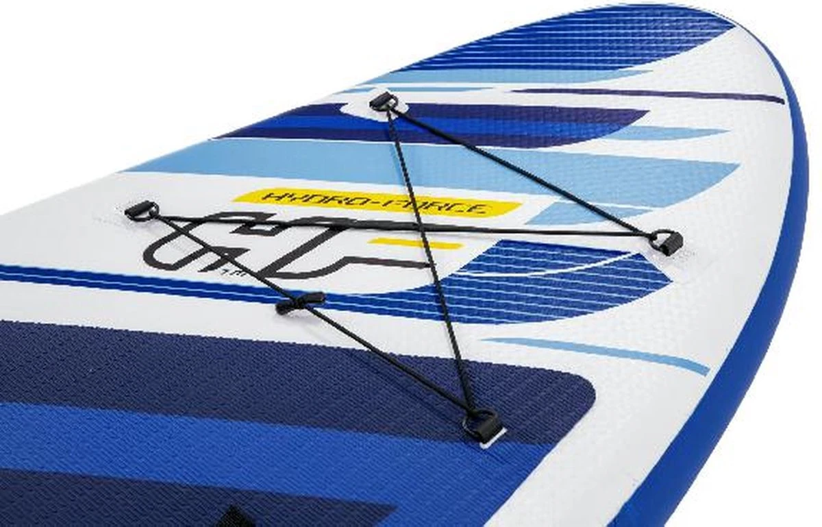 Bent u opzoek naar een SUP van goede kwaliteit? Dan is dit SUP board van Bestway precies wat u zoekt. Dit SUP board is ideaal voor zowel beginners als gevorderden. Het opblaasbare Stand up SUP-board is gemaakt van een stevige kwaliteit polyester materiaal voor een optimale grip en comfort, zodat u uren lang kunt genieten op het water. Alle benodigde accessoires zitten in het pakket. U bent in één keer voorzien van alle spullen en kunt zo het water op!