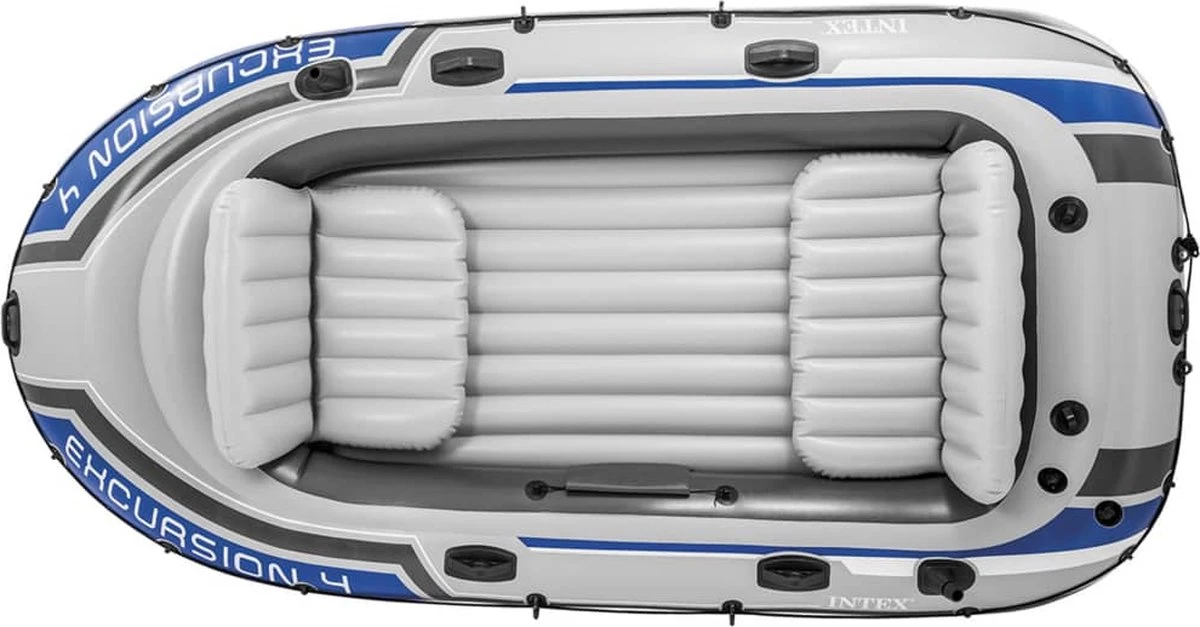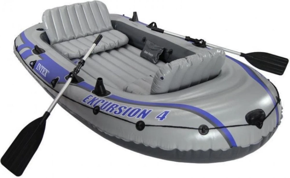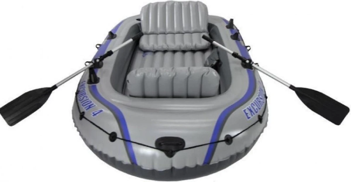 De Intex Excursion 4 is een zeer stevige, comfortabele, extra brede opblaasboot. De stoeltjes zitten erg comfortabel en zijn voorzien van een rugleuning. Tevens is er extra beenruimte waardoor u ook tijdens een hele dag vissen of varen prima zit. De boot beschikt over 3 afzonderlijke luchtkamers en wordt geleverd met 2 opblaasbare stoeltjes, 2 aluminium roeispanen, een handpomp en een handige opbergtas. De boot is erg duurzaam en bestand tegen verschillende factoren.