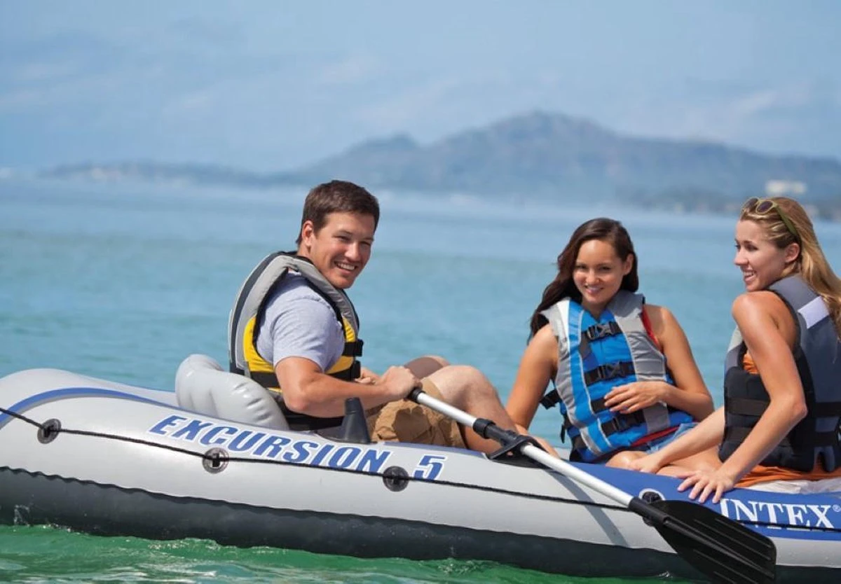 De Intex Excursion 5 is een ideale boot voor een gezin. De serie Excursion boten zijn de meest ruime boten die Intex produceert. Deze opblaasbare boot is geschikt voor recreatieve vaartochten maar ook om mee te gaan vissen. De Intex Excursion 5 beschikt over twee opblaasbare zitkussens met rugleuning zodat je comfortabel zit tijdens je vaartocht. Ook beschikt de Intex Excursion 5 over extra beenruimte en twee hengelsteunen.
