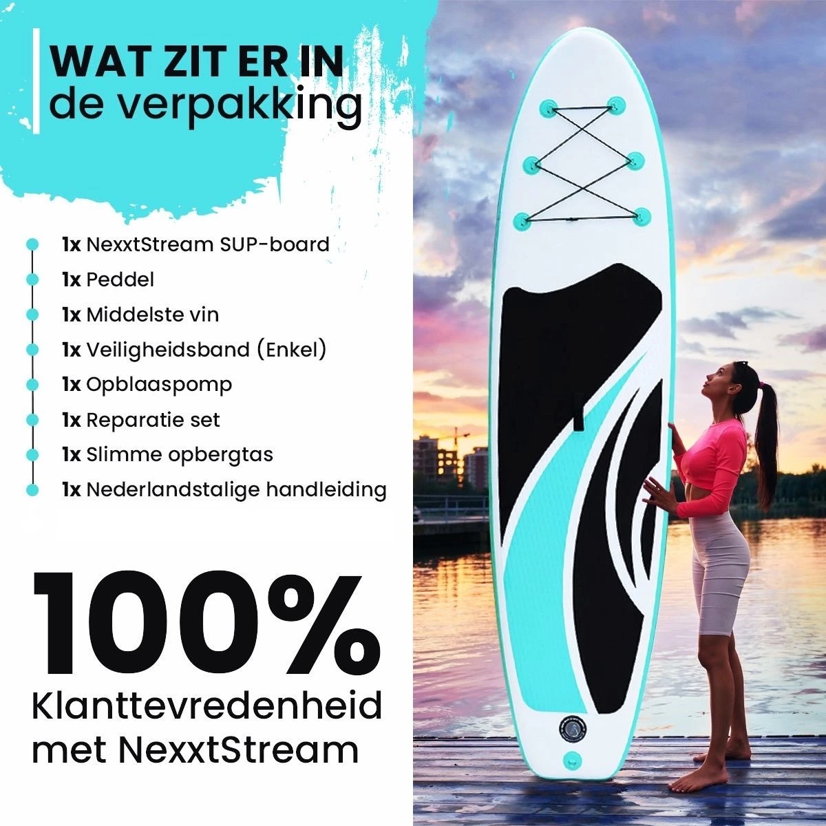 Kies als beginnende of gevorderde peddelaar voor het SUP board met de meest populaire maat op de Europese markt van NexxtStream! Het kwalitatief hoogwaardige SUP board is gemaakt van EVA-schuim en het is volledig UV- en krasbestendig, waardoor het zeer duurzaam in gebruik is. De drie (3) verschillende vinnen en antislip laag resulteren in optimale stabiliteit. Dankzij de maximale ruime draagkracht van 135 kg is het board uitermate geschikt voor alle verschillende gewichtsklassen.