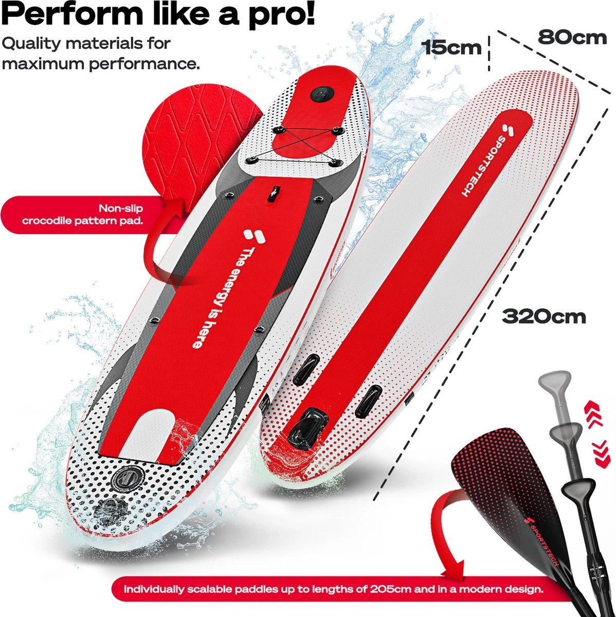 - ✅7in1 compleet-set: Het Stand Up Paddling Board van Sportstech laat geen wens onvervuld: free Backpack, Power luchtpomp, 205 cm in lengte verstelbare paddle, veiligheidslijn, snelle reparatiekit en slide-in-vin bieden alles wat je nodig hebt voor avontuur op het water.