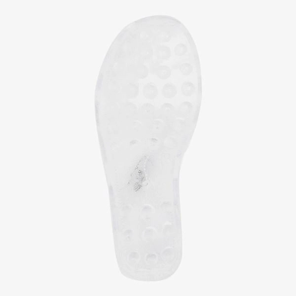Transparante waterschoen voor dames en kinderen. De waterschoenen hebben een verstelbare gespsluiting.
