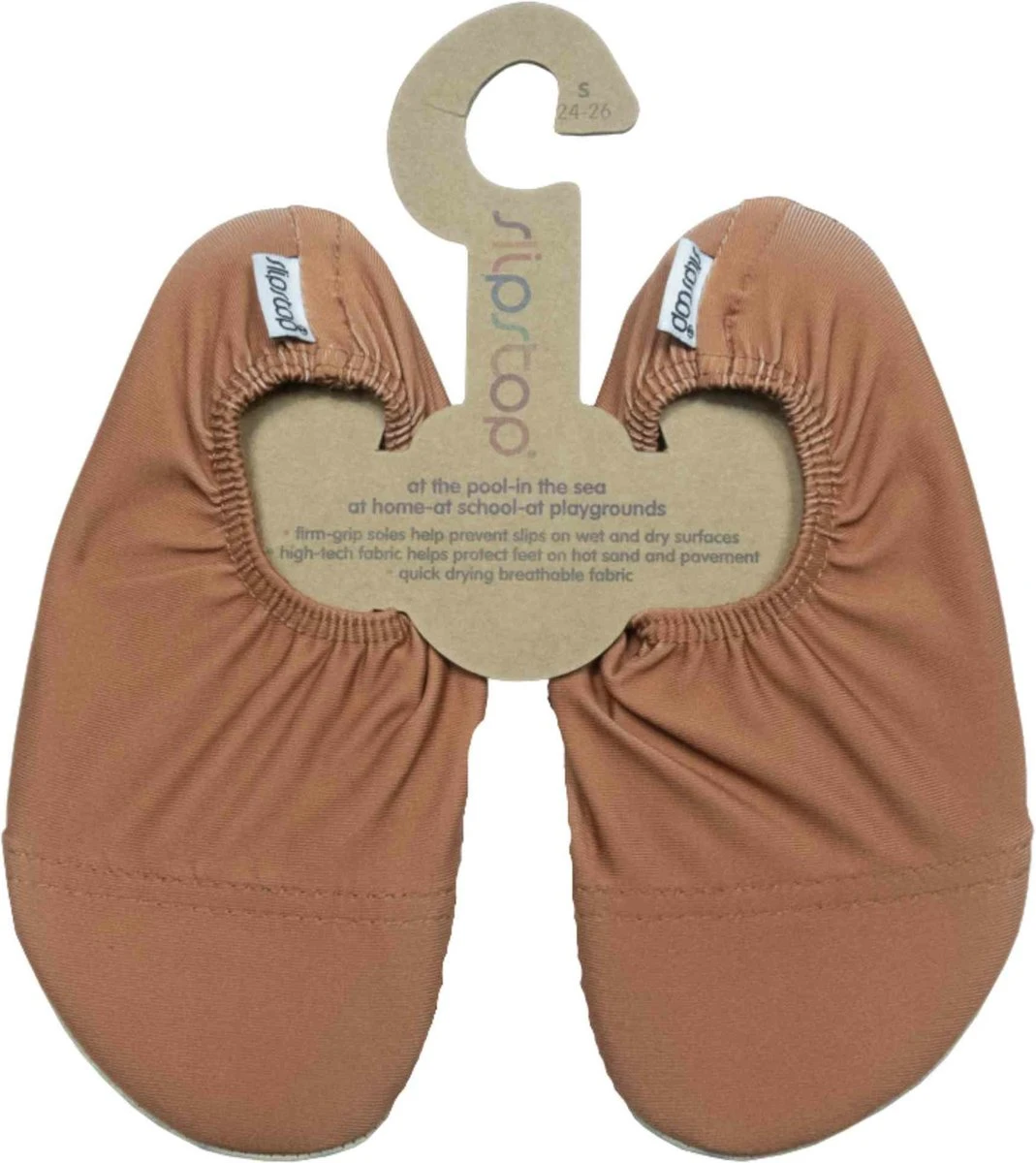 Slipstop cognac zwemschoentjes zijn praktisch voor baby en kind met multifunctionele gebruiksmomenten. Je kan de Slipstops gebruiken op zowel natte als droge ondergronden. Zowel binnen als buiten zijn de Slipstop shoes een goede keuze. Je kleintje heeft grip tijdens het rennen en spelen en door de zool is het voetje beschermd tegen prikken en hete tegels, zand en kunstgras.