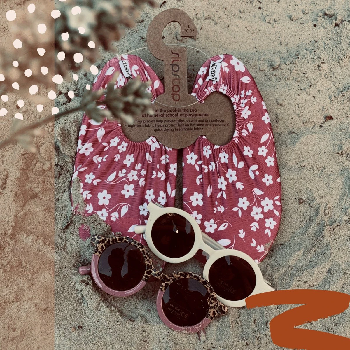 Meisjes Slipstop Flor – Roest bruin met witte bloempjes Suptiele witte bloementjes op de hippe roest bruin/rood kleur. Dat maakt deze waterschoentjes echt passend bij de zwemkleding van dit jaar. Wat een schattig printje hè! Deze hippe kleur slipstops shoes zijn fijn neutraal zodat ze makkelijk onder elk badpakje passen.