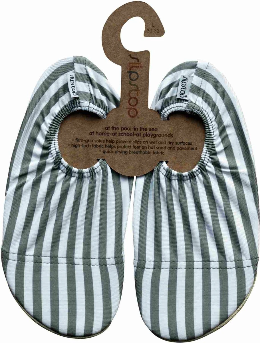Slipstop Greenbay Stripe – Wit met groen gestreept Wil je de zwembroekjes en zwempakjes van deze zomer combineren met bijpassende hippe waterschoentjes. In de kleuren van deze mode? Dan zijn deze gestreepte waterschoentjes van Slipstop helemaal hip! Zowel leuk voor jongens als voor meisjes. Dus je kan zelfs broer en zus laten twinnen!